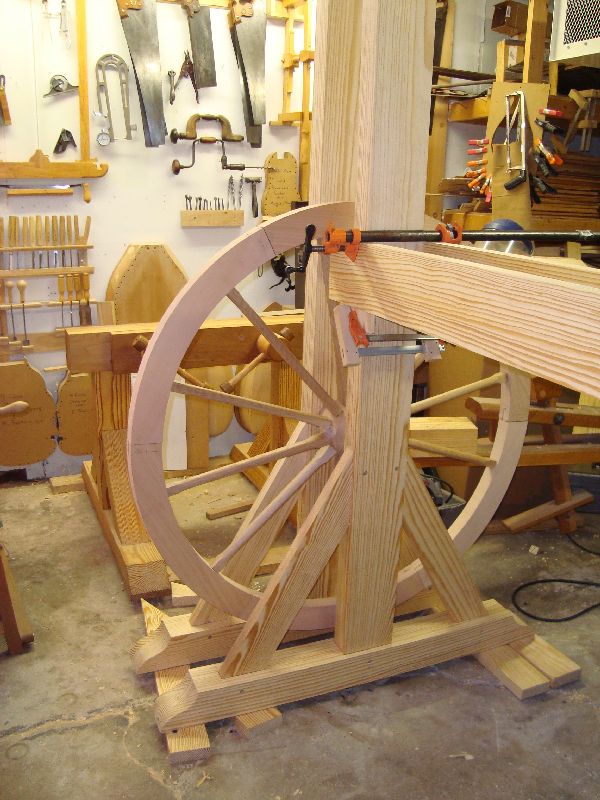 Wheel uprights in progress, measuring the stretchers