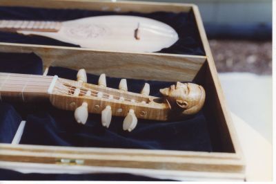 Pegbox detail with small cittern in background