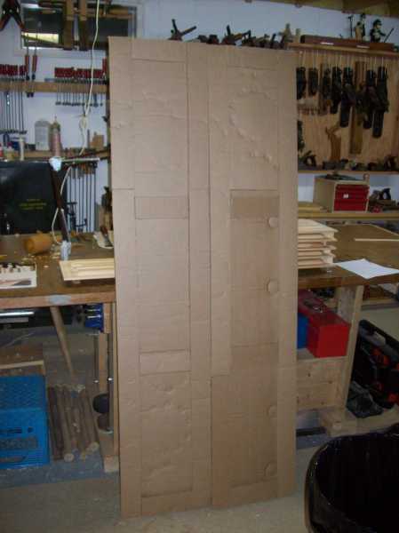 Mock-up of the cabinet doors, made from cardboard and hot melt glue. Gotta love hot melt glue.