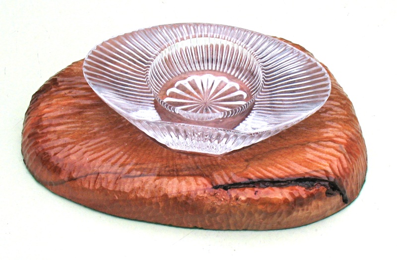 My wife finds pretty glass pieces, then brings them to me so I can make fancy bases for them. This is a hand carved base.