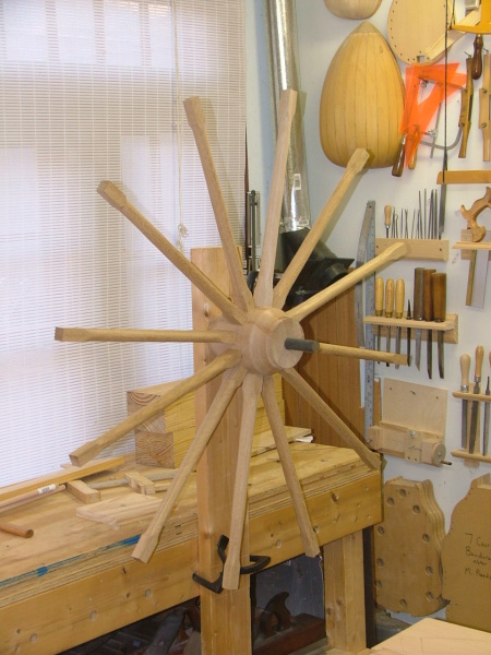 48" wheel I'm building for a wire string twisting machine -- to make pre 17th C. style musical instrument strings