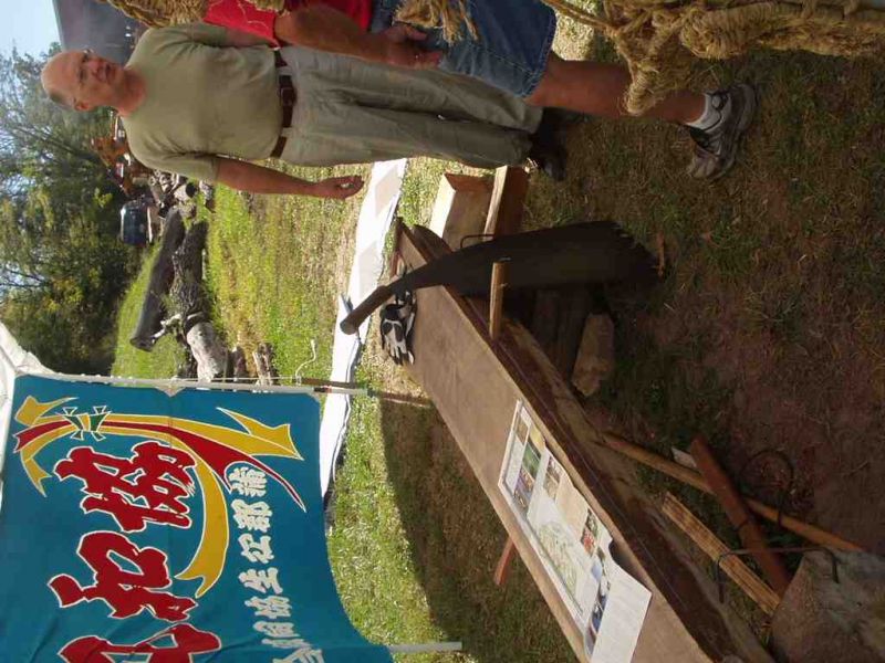 The fellow in the picture is the Columbia Mo resident who teaches in Japan and who was responsible for bringing the Japanese Sawyer's to central Missouri to do this demonstration.