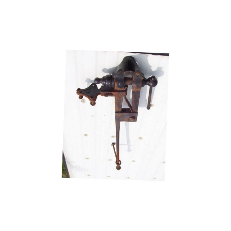 Nice small post vise, from auction. Big letter C on the mounting bracket, a Columbia, or Champion. When I got it, the leg was bent into the letter C.