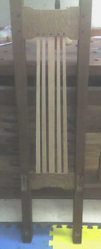 The completed back. I had to finish it before assembly because of the different woods. The oak has a faux-fumed finish, while the figured maple is just natural danish oil. (Apologies for poor quality-- camera phone shot)